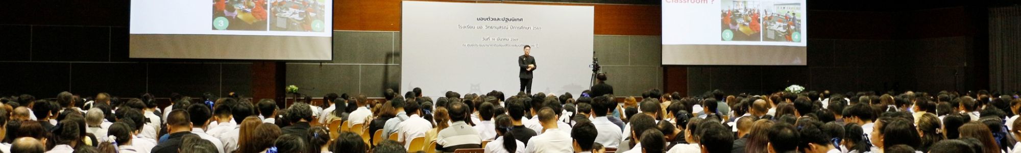 เตรียมความพร้อมก่อนการเปิดภาคเรียน กับกิจกรรมมอบตัวและปฐมนิเทศนักเรียนใหม่ ปีการศึกษา 2569 โดย คุณสุชาติ สุขะพันธ์ ผู้อำนวยการโรงเรียน มอ.วิทยานุสรณ์ กล่าวต้อนรับและปฐมนิเทศนักเรียนระดับชั้นมัธยมศึกษาปีที่ 1 และมัธยมศึกษาปีที่ 4 ประจำปีการศึกษา 2569 ณ ห้อง Conference Hall ศูนย์ประชุมนานาชาติฉลองสิริราชสมบัติครบ ๖๐ ปี